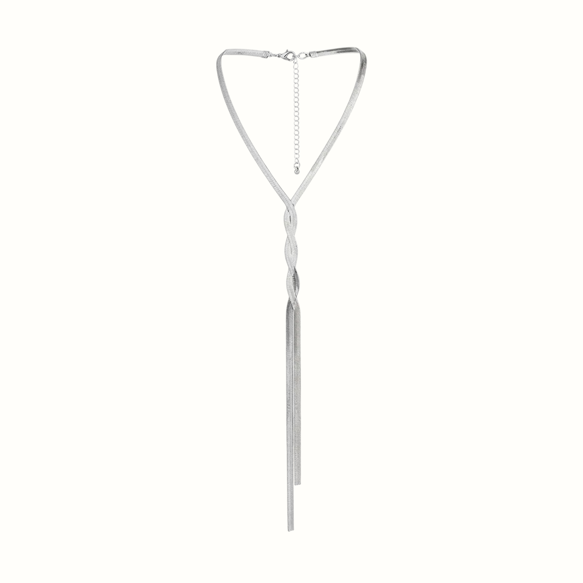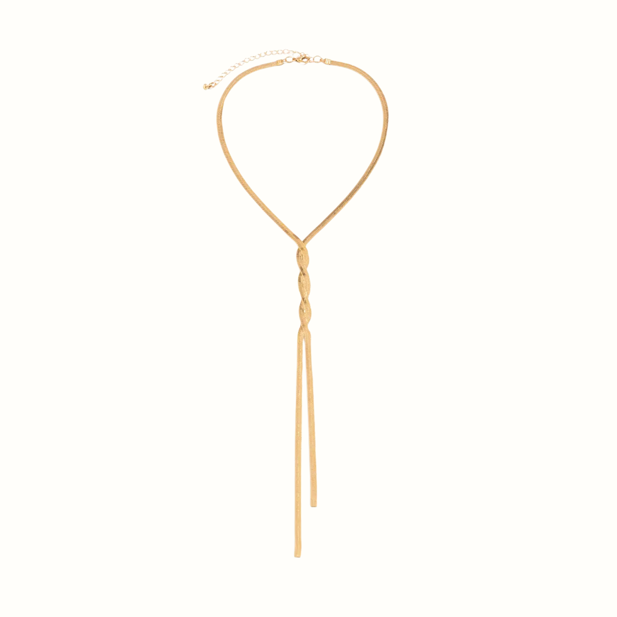 Sa chaîne serpent plate et brillante glisse délicatement sur la peau et crée un effet allongeant ultra chic. La chute fluide attire subtilement le regard et apporte une touche élégante, sans jamais en faire trop.