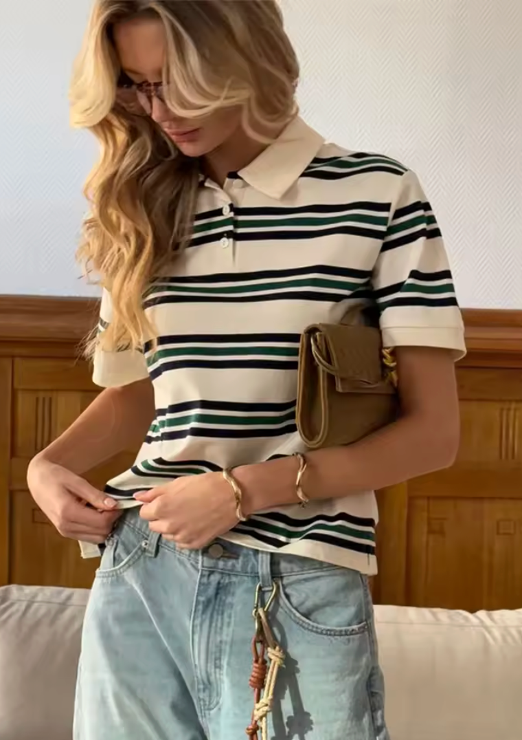 Le Polo rétro Maëlle est une pièce incontournable qui allie esprit vintage et tendance actuelle. Avec son allure rétro totalement dans l’air du temps, il s’impose comme un véritable must-have fashion de la saison.